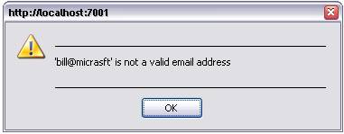 Client validation is written in javascript and executes on the user’s browser. If a client validator fails, a message box with a suitable error is displayed, prompting the user to enter a legal value. An error box will only be displayed for the first field to fail.