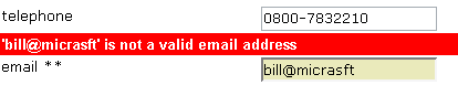 Checks that the user's value is a valid email address, as specified by RFC 822. Only the format of an email address is checked and the presence of an active mailbox cannot be guaranteed.