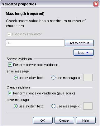 error message: - choose the error message that is displayed when a validation check fails. It can either be a system text or a project message.