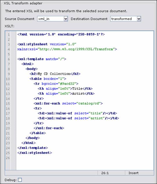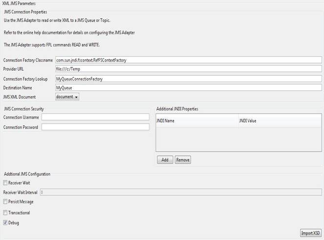 XML message to JMS. The JMS adapter supports reading or writing an XML message