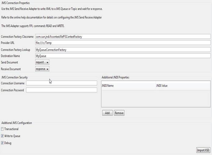 sending and receiving an XML message to JMS. The JMS adapter supports a