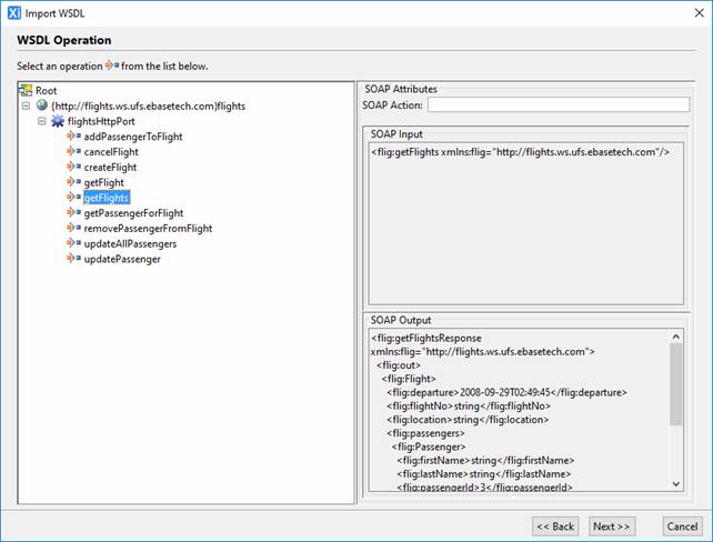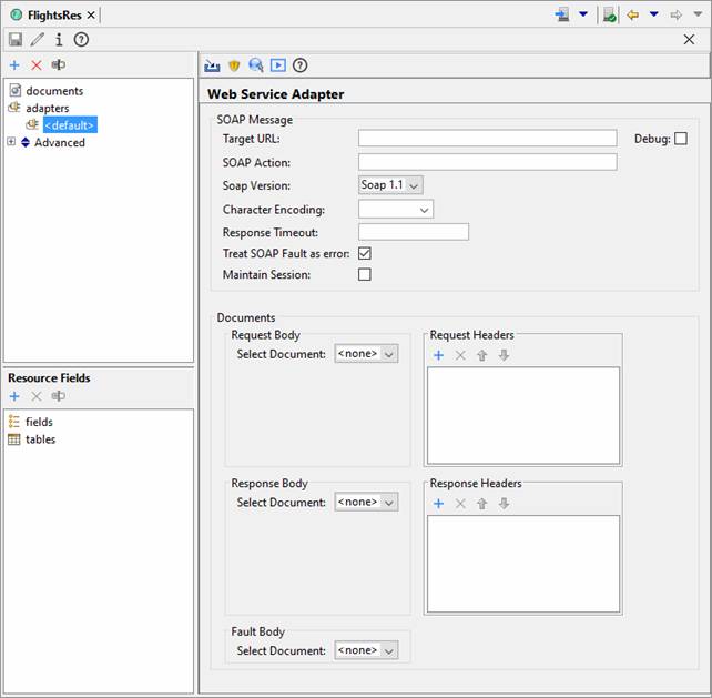 Open FlightsRes SOAP Web Service Resource, select