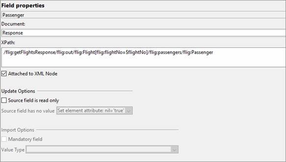 to /flig:getFlightsResponse/flig:out/flig:Flight[flig:flightNo=$flightNo]/flig:passengers/flig:Passenger.