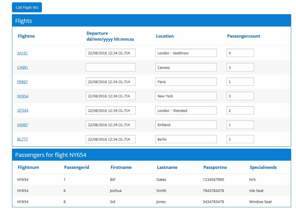 the two resource tables, Flight and Passenger.