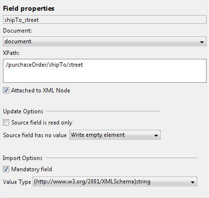 and type of the new field will be based on the selected XML node. Fields are normally attached to nodes that